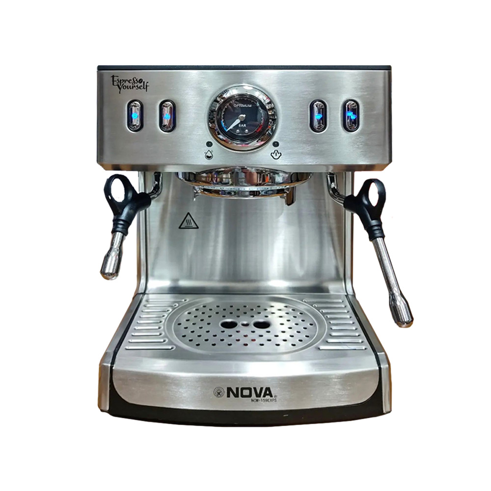 اسپرسوساز 1.6 لیتری نوا، مدل NCM-159، مناسب تهیه اسپرسو، کافه لاته، کاپوچینو، موکا، ماکیاتو، امکان استفاده از پودر قهوه، قابلیت تنظیم میزان بخار به صورت دستی، دارای سیستم کاپوچینوساز، دارای دو عدد نازل قهوه